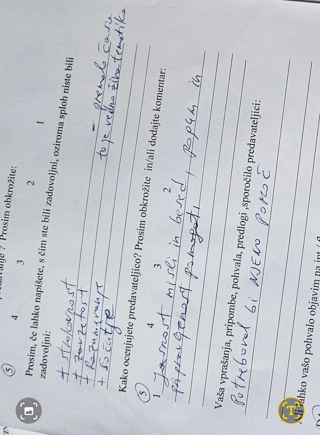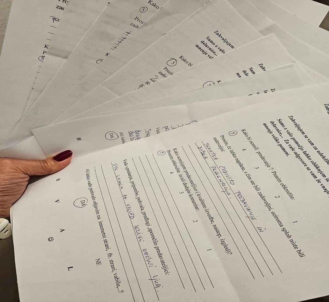 To so samo nekatera mnenja ljudi od oddanih in izpolnjenih anketnih listih. Predolgo bi bilo vse prepisovati. HVALA vsakemu posamezniku in vsem skupaj!
